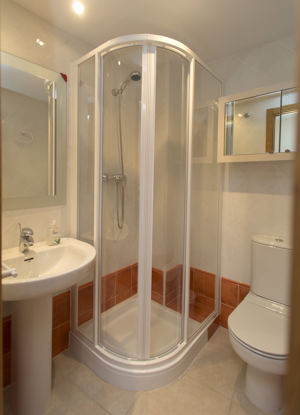 Das zweite Bad hat ein Duschbad, WC und Waschbecken.