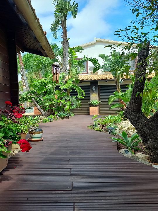 Hier finden Sie alle Annehmlichkeiten, die Sie für Ihren Sonnenurlaub brauchen. Die Villa mit ihren 180 m2 Wohnfläche ist geschmackvoll eingerichtet und besticht durch ihren modernen Outdoor Bereich mit Wohlfühlfaktor. Neben der elegant gestalteten Poolterrasse gibt es eine weitere überdachte Veranda mit Außenessplatz und einem gemütlichen Sofa für die Siesta. Es ist ausreichend Platz für 6 Personen vorhanden, mit 3 Schlafzimmern und zwei Bädern. Im unteren Bereich befindet sich ein Schlafzimmer mit Ventilator, Klima + TV + Bad ensuite (Badewanne mit Whirlpool + Dusche), der großzügig geschnittene Wohn-Essbereich mit Klimaanlage und die moderne, vollausgestattete Küche, sowie ein Gäste WC. Internet und SAT TV sind selbstverständlich. Über eine Treppe gelangt man in den oberen Bereich mit zwei Schlafzimmern, die beide jeweils über eine Klimaanlage verfügen und sich ein Duschbad teilen.